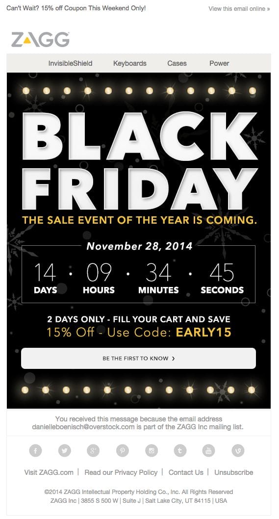 Be the first to reach your subscribers and customers by email with BFCM offers
