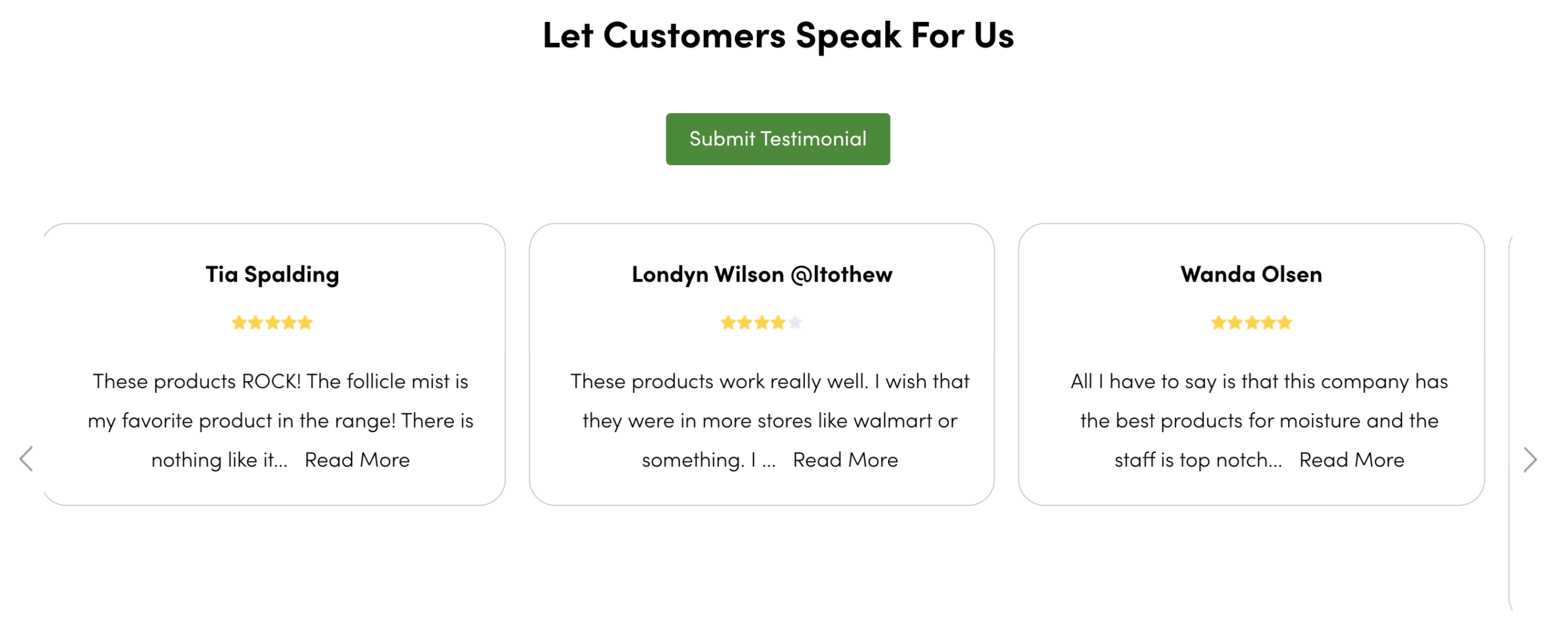 Testimonials are a powerful way to reassure new shoppers about your brand and make them feel confident enough to shop from you.