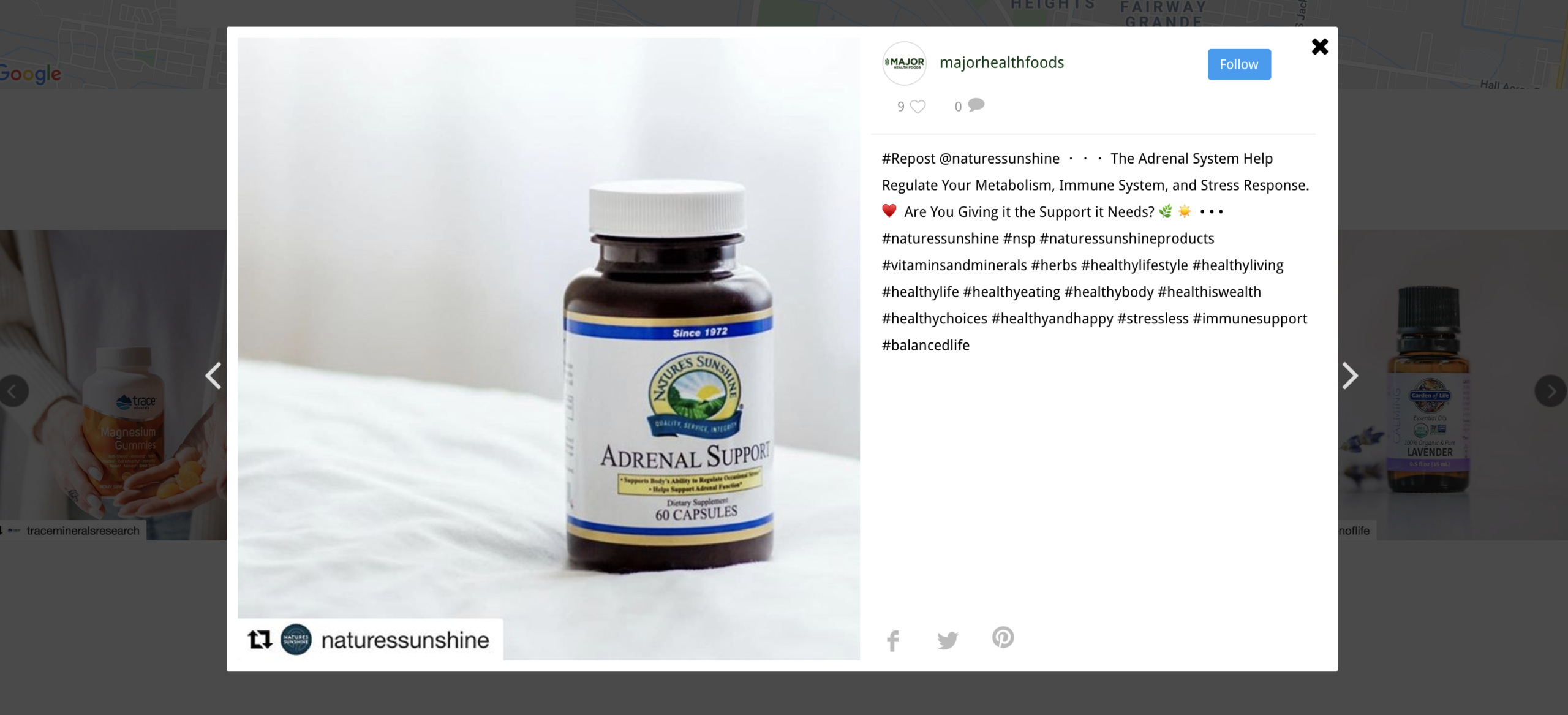 Here’s how Major Health Foods is using the app to showcase their Instagram posts on the store pages: