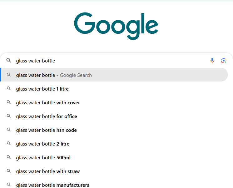 Type the main keyword or product in the search bar and you will get the suggested keywords. For example, if your product is glass water bottle then type glass water bottle and you will see the similar keywords around it.