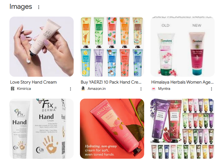 Here is how the women’s hand cream search images will look like: