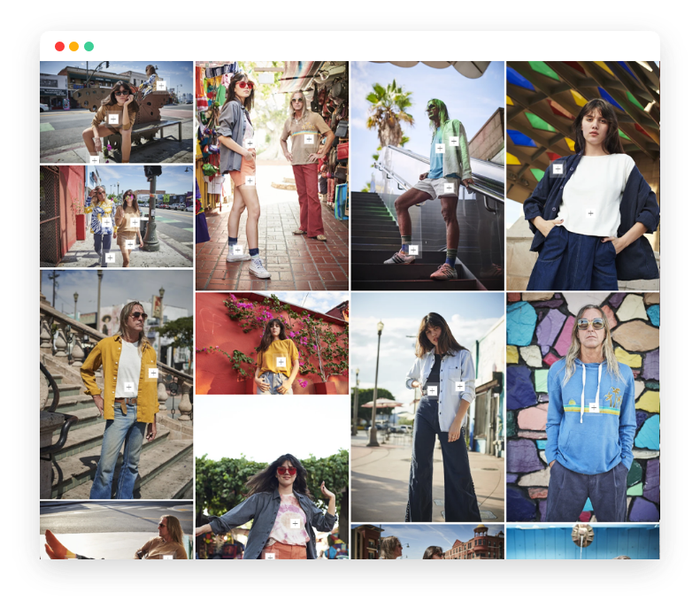 A grid lookbook lets you display your images similar to an Instagram feed, delivering a social media browsing experience to your shoppers. Your images will be shown within a classic square layout.