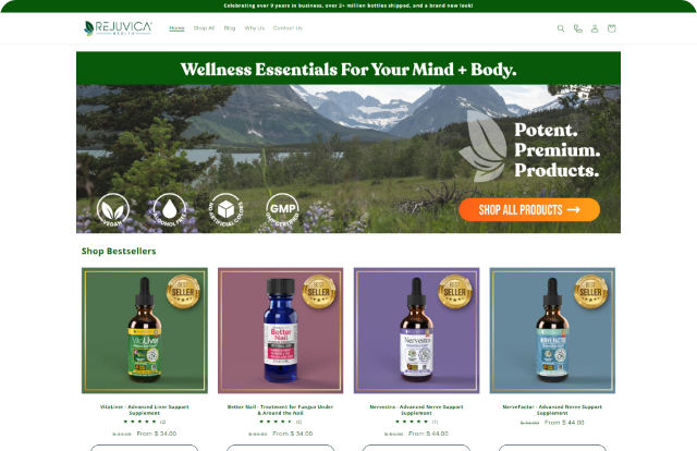 Shopify store for Rejuvica Health