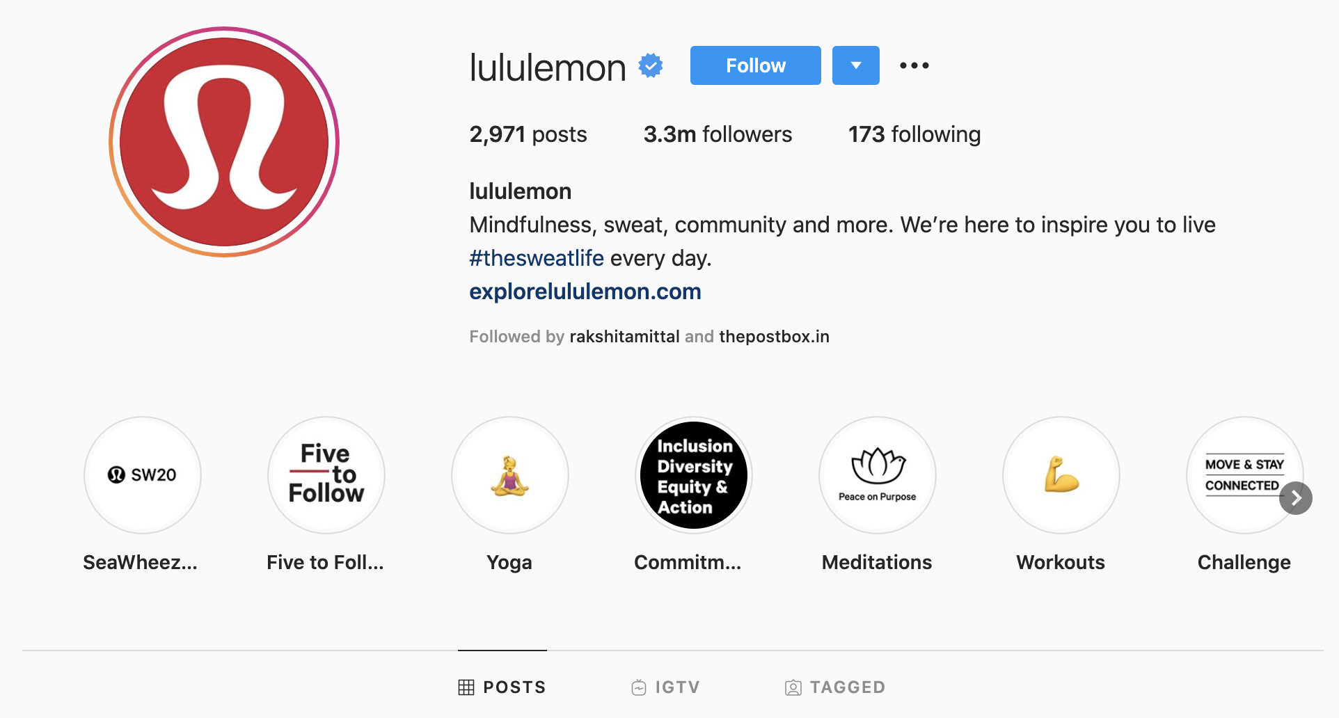 Lululemon has added ‘#thesweatlife’ to their Instagram bio to champion their values of working out.