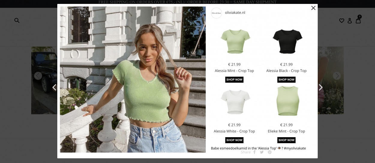 Your shoppable feed is also mobile responsive and highly customizable. This way, you can make sure that the shoppable feature matches your store design.