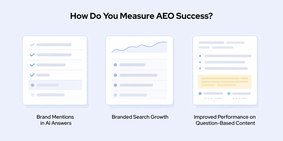 This part surprises people, AEO does not always show up as a clean metric in Analytics. But you can still measure progress using these indicators-