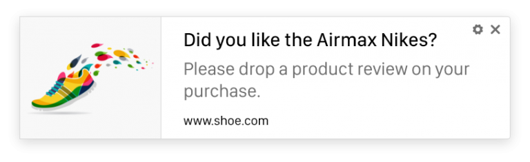 Web push notifications are sent to your shopper’s device screen, making them highly visible. Diversify your channels for communication by using web push notifications to request reviews from your shoppers. Web push notifications are a new but well-received channel, making it a marketing channel that many merchants are adopting.